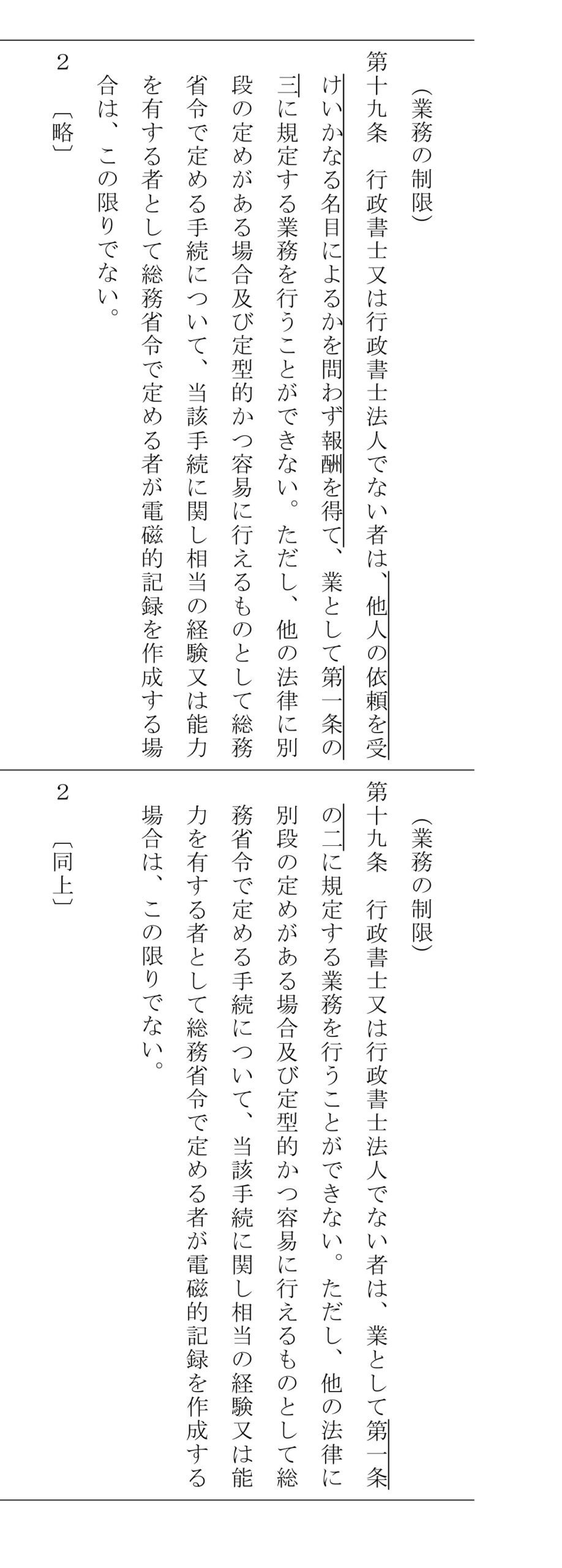 改正後の行政書士法第19条第1項には、業として(行政書士の独占業務を)行うことができない条文として新たに以下の文言が加えられました。
